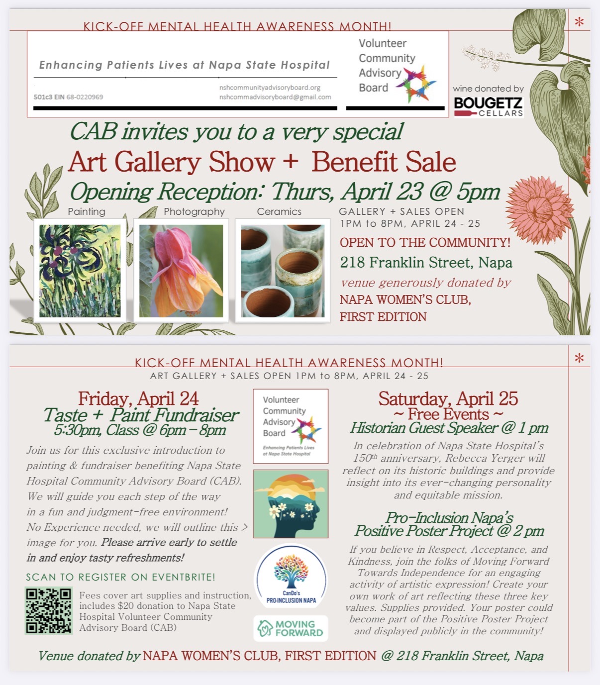 We’re a small nonprofit looking to grow our membership, made up of retired hospital staff and Napa locals who care deeply about mental health recovery. We operate independently as a 501(c)3 entity with a mission to bring comfort, joy and community to the 1,200+ patients who call the Napa State hospital home. We ensure funds raised are expended directly to the patients receiving care and treatment services.